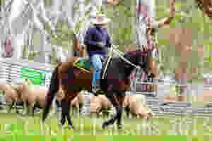 An exciting demonstration of horsemanship and unity between stockman, horse and dog. Together they skilfully worked the (dopey) sheep from yard to paddock to yard. This didn't always go to plan (sheep don't know the rules), and dogs will be dogs (marking their territory or sniffing out someone else's!)